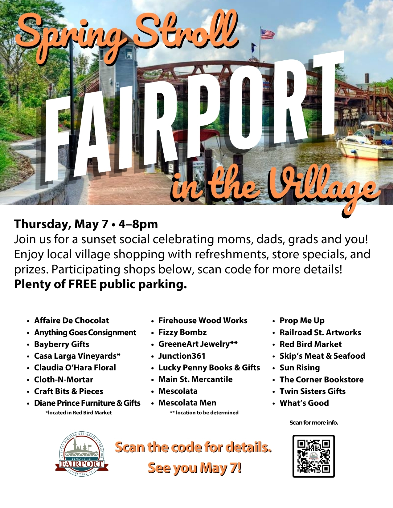- Administration & Communication Coordinator – Pam Renfro – info@fairportmerchants.com
